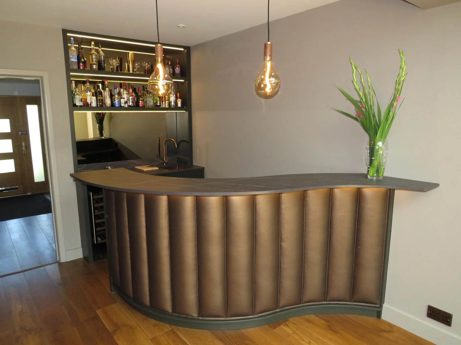 A bespoke home bar and alcove unit, crafted with precision and featuring elegant curved detailing — a true test of our craftsmanship 🥃🍸